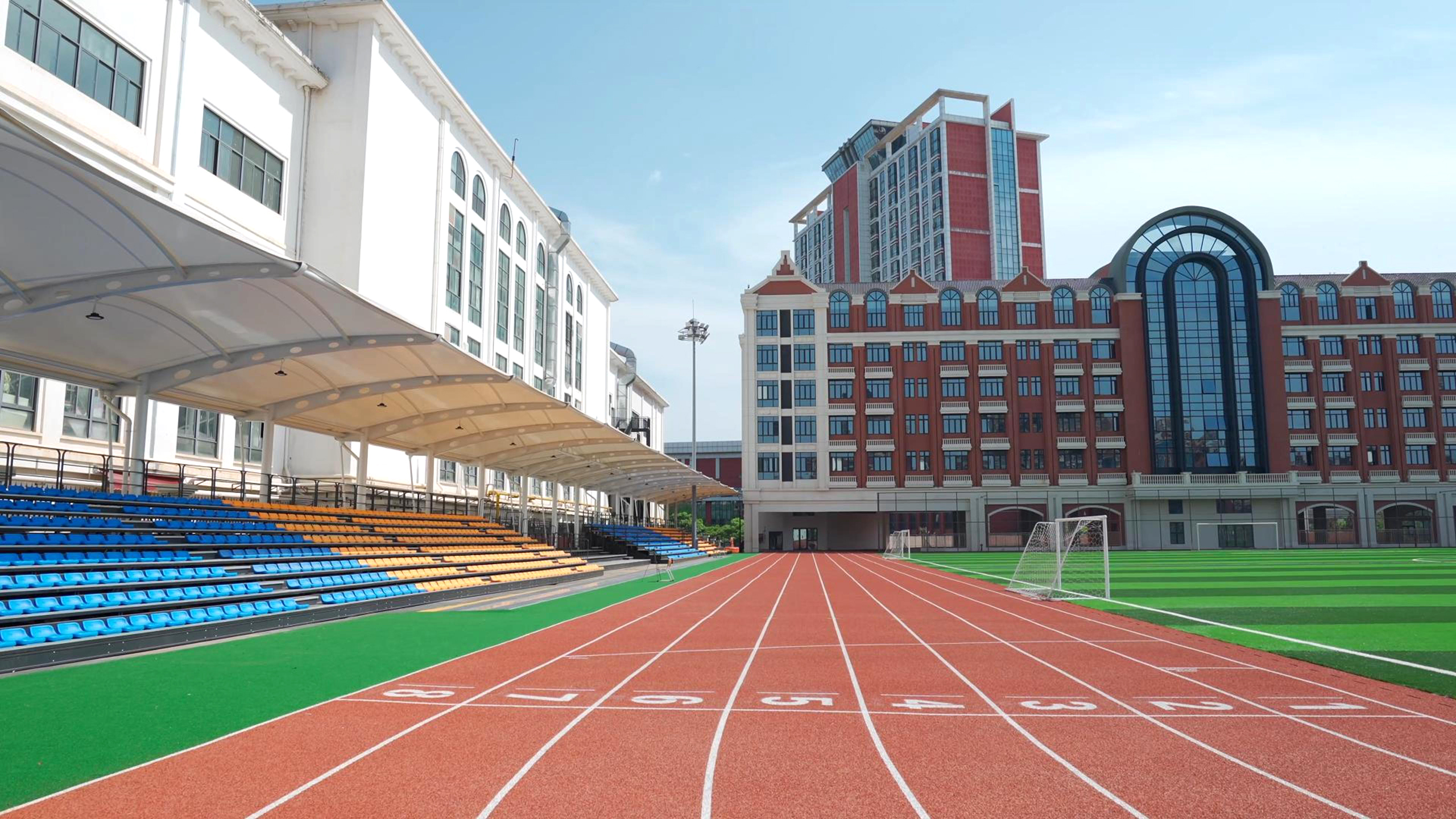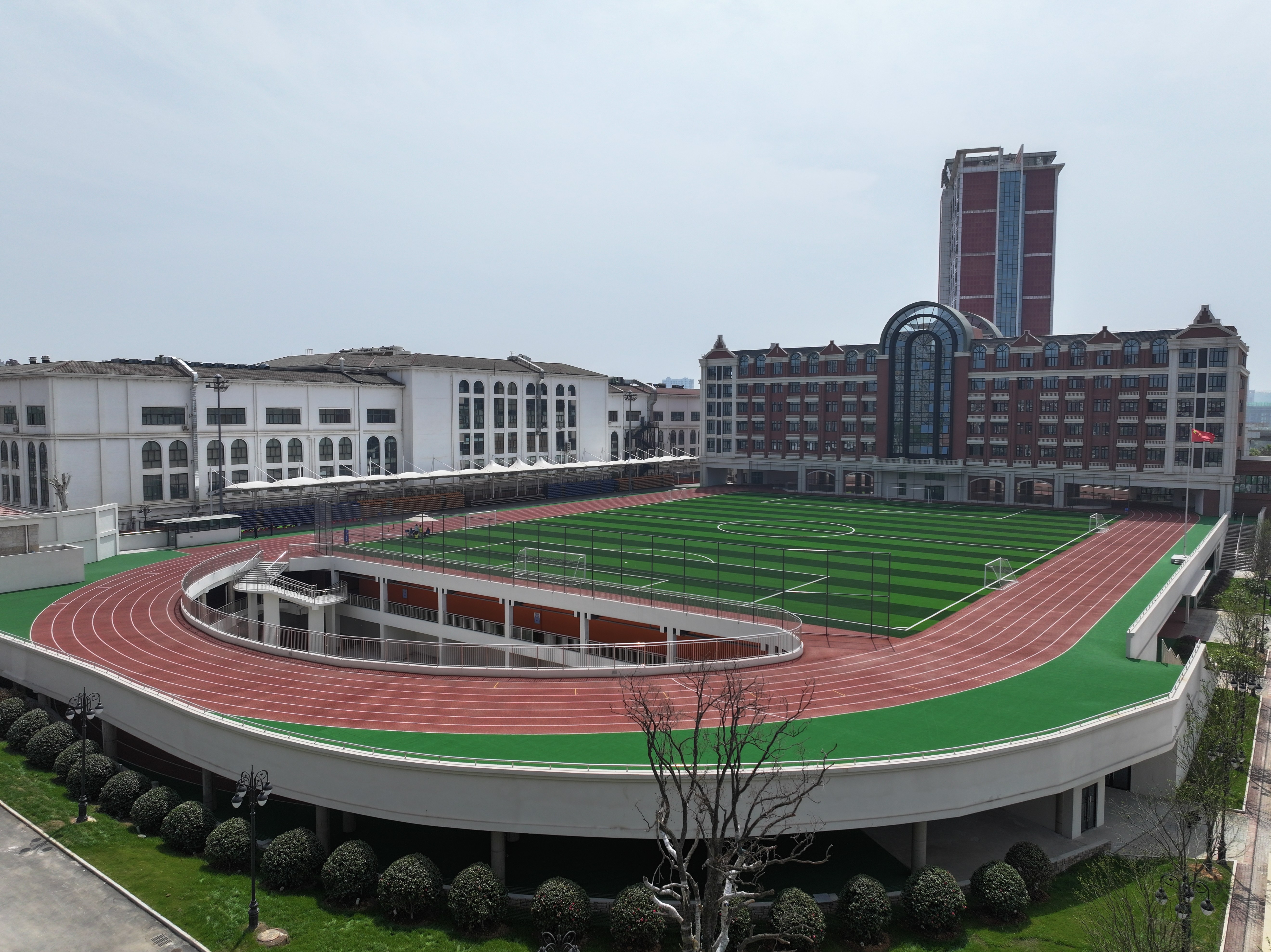 体育场馆:这座拔地而起的三层立体操场,宛如一座钢铁与活力交织的运动堡垒。风雨无阻的空间设计,为每一位怀揣运动梦想的少年,搭建起一座永不熄灭的热血竞技场。