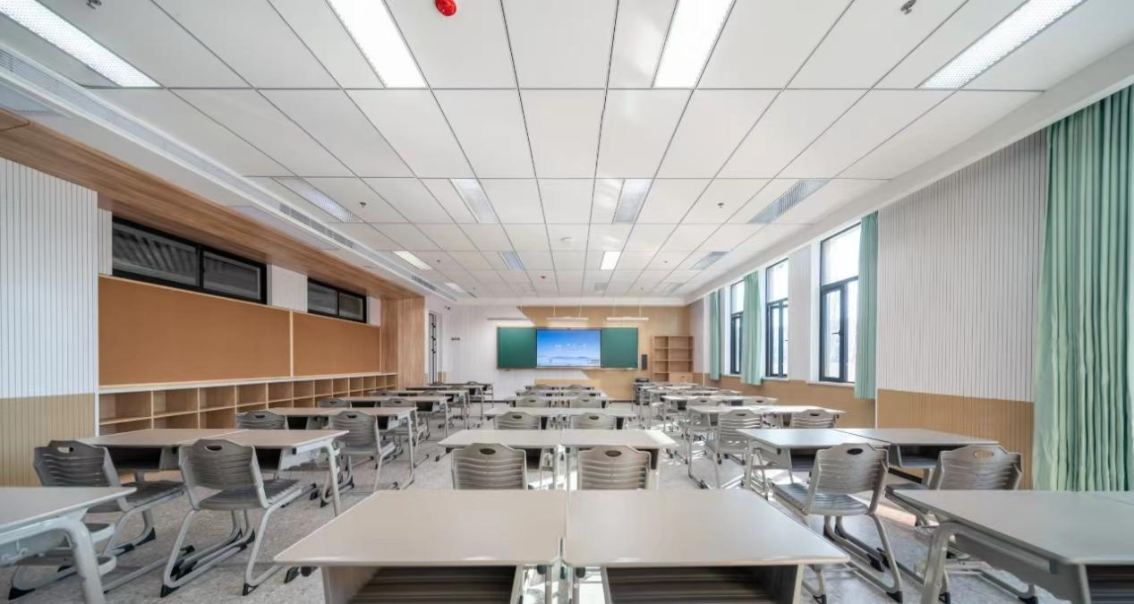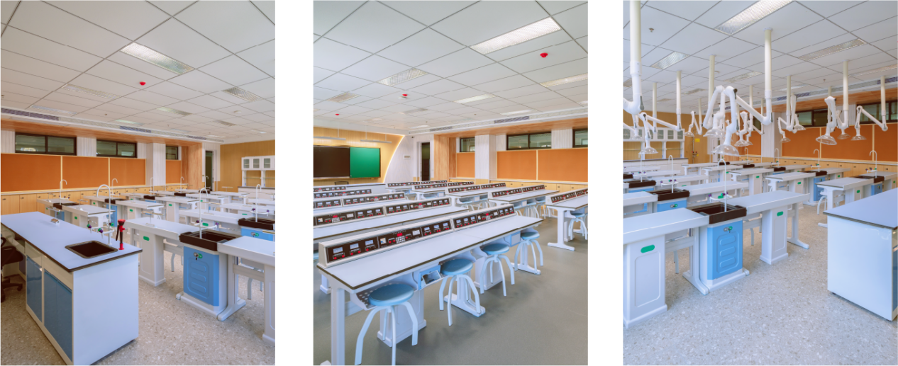 功能教室:教学楼灯光明亮,不仅照亮了教学楼的每一寸空间,更点亮了莘莘学子们求知的道路。摆放整齐的桌椅,崭新而美观。功能教室设施完备,全方位地满足了物理、化学、生物课堂教学和实验的需求。